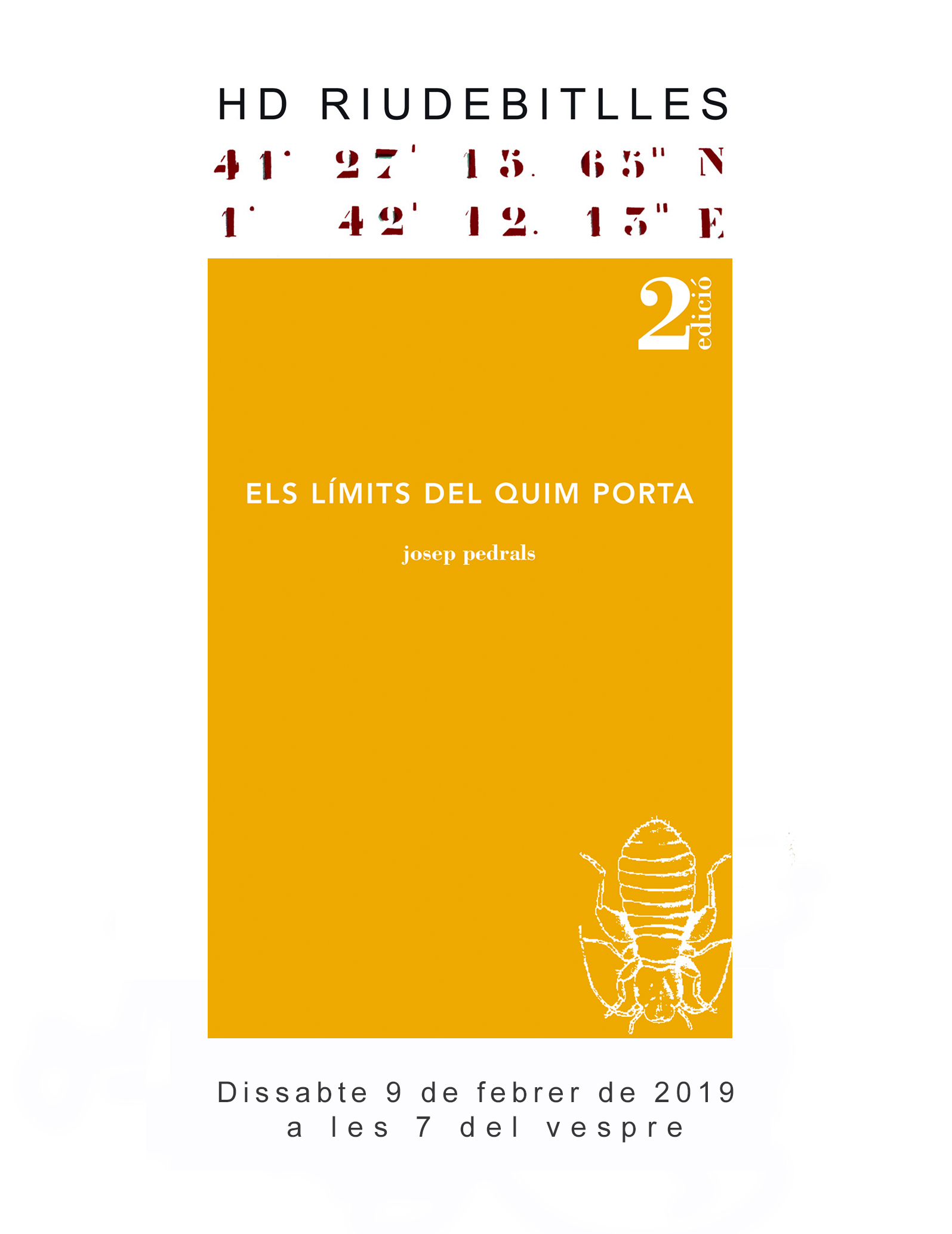 30.06.2019, a les 12.00: recorregut per l’exposició de Kristof Willemsen, guiat per l’artista, que presenta el seu treball dels darrers dos anys: un viatge íntim explorant les fronteres i possibilitats de la pintura. HD Riudebitlles, espai Satan i molí de Cal Xerta. Exposició fins al 13.07.2019.